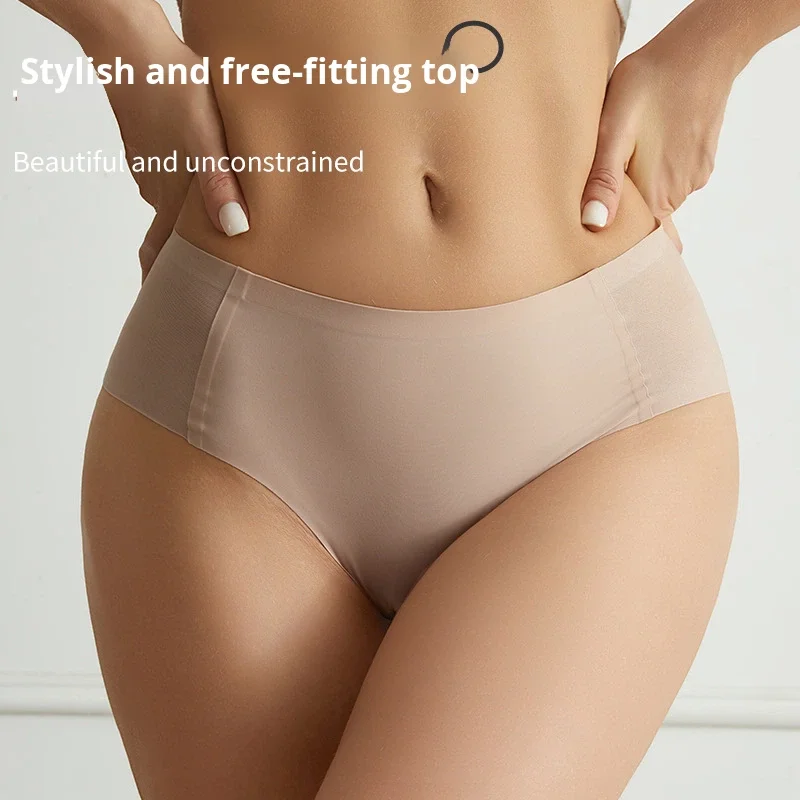 High Elastic Seamless Thin Women's Solid Color Side Mesh Hollow Sexy Anti-Bacterial Skin Friendly Thin Briefs Thong Underwear